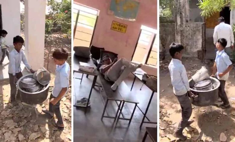 यह घटना रियांबी उपखंड के दासावास गांव में स्थित सरकारी उच्च प्राथमिक विद्यालय में हुई। मिड-डे मील के ब्रेक के दौरान आराम करने या खाना खाने के बजाय, कई बच्चों को भारी स्टील के बर्तन उठाते और एक जगह से दूसरी जगह ले जाते देखा गया। इस फुटेज ने स्कूल में निगरानी और छात्रों के कल्याण को लेकर गंभीर सवाल खड़े कर दिए हैं।