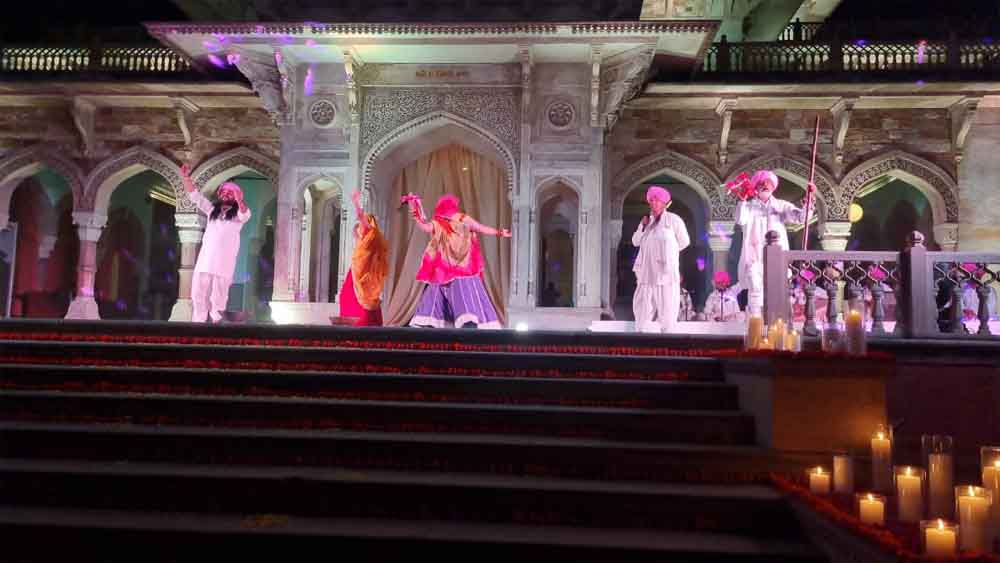 कथक नृत्यांगना संगीता सिंघल के नेतृत्व में पारंपरिक कथक में त्रिवठ जो कि कथक व कविता के बोल और सरगम, तीन विधाओं का संगम प्रस्तुत किया। पारंपरिक कथक और लोक नृत्य का यह फ्यूजन, जो आधुनिकता और परंपरा का अनूठा संगम था। इस आयोजन ने न केवल राजस्थान की सांस्कृतिक धरोहर को संरक्षित करने का प्रयास किया, बल्कि दर्शकों को राज्य की विविध और समृद्ध संस्कृति से भी अवगत कराया। यह कार्यक्रम राजस्थान की कला और संस्कृति को सशक्त रूप से प्रदर्शित करने का एक बेहतरीन उदाहरण बनकर उभरा, साथ ही संगीता द्वारा “ऐरी सखी मोरो पिया घार आयो……. ठुमरी का भी प्रदर्शन किया।