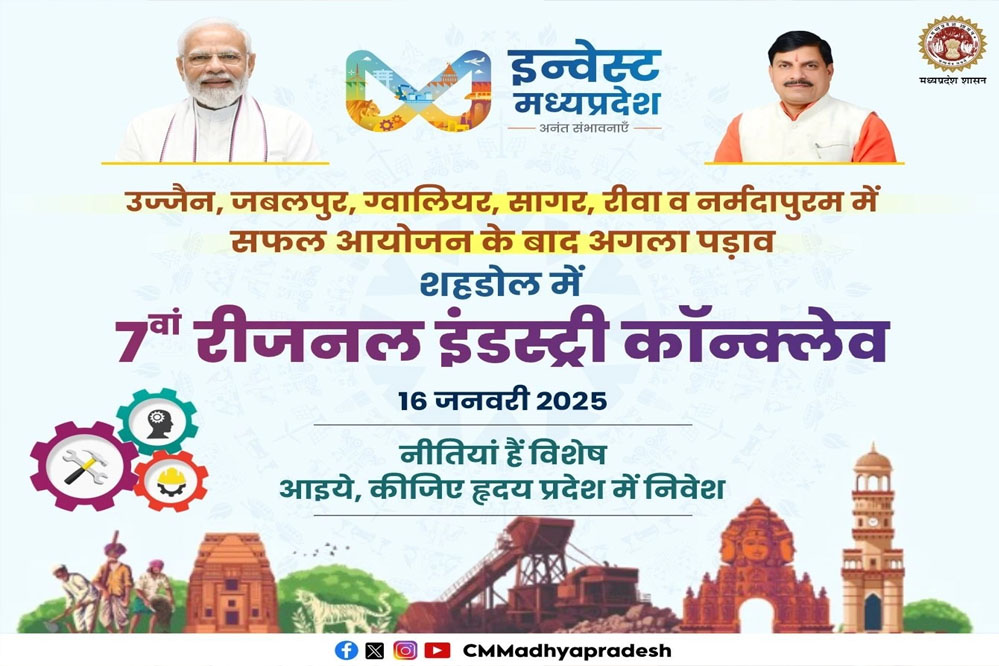 मुख्यमंत्री डॉ. मोहन यादव ने कहा है कि शहडोल औद्योगिक क्षेत्र की अपार संभावनाओं की भूमि है। सहयोग और साझेदारी के साथ क्षेत्रीय उद्योगों को बढ़ावा देने के लिये 16 जनवरी को यूनिवर्सिटी इंस्टीट्यूट ऑफ टेक्नोलॉजी शहडोल में रीजनल इंडस्ट्री कॉन्क्लेव होने वाला है। इसमें उद्योगपतियों और निवेशकों के साथ नीति संवाद और नवाचार साझा किये जायेंगे। कॉन्क्लेव में 4 हजार से अधिक प्रतिभागी और 2 हजार से अधिक उद्योगपति शामिल होंगे।