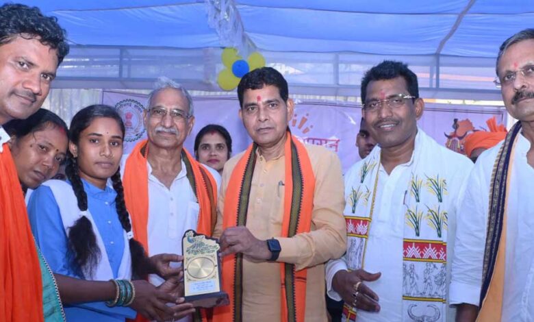 मुख्यमंत्री विष्णु देव साय के नेतृत्व में गांव एवं शहरी क्षेत्रों में सुशासन तिहार का आयोजन किया जा रहा है। आज गरियाबंद जिले में फिंगेश्वर विकासखण्ड के ग्राम पंचायत बिजली में आयोजित समाधान शिविर में प्रदेश के राजस्व मंत्री टंक राम वर्मा शामिल हुए। राजस्व मंत्री वर्मा ने स्थानीय बाबा कुटीर धाम के लिए 30 लाख रूपए, मुक्तिधाम मार्ग के लिए 10 लाख रूपए, जिम निर्माण के लिए 5 लाख रूपए एवं तीन ब्लॉक में कबड्डी खिलाड़ियों के लिए मेट देने की घोषणा की। इसी तरह ग्रामीण सेवा सहकारी समिति बोरसी और ग्राम बिजली में महिला स्व-सहायता समूह के लिए भवन का लोकार्पण किया।