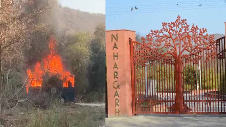 सफारी बस में लगी आग, नाहरगढ़ पार्क में लॉयन्स के बीच बची जान