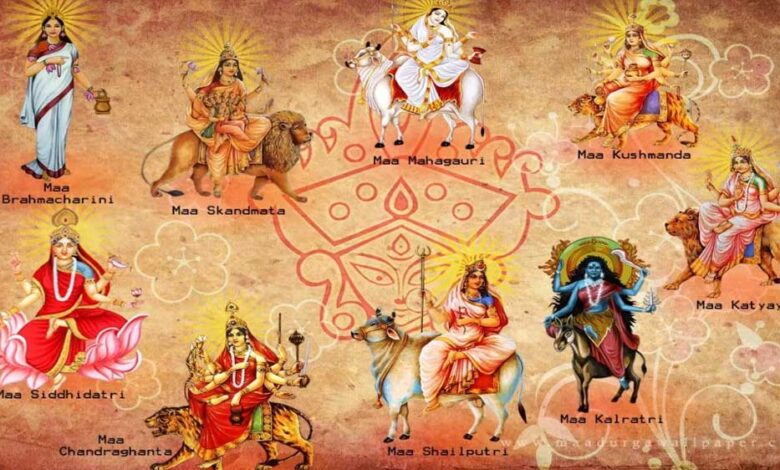 नवरात्र में नौ दिन शैलपुत्री ब्रह्मचारिणी चंद्रघंटा कूष्मांडा स्कंदमाता कात्यायनी कालरात्रि महागौरी सिद्धिदात्री नौ देवियों की पूजा हाेती हैं। 10 विधाओं में काली, तारा, त्रिपुर सुंदरी, भुवनेश्वरी, छित्रमस्ता, धूमावती, बगलामुखी, मातंगी, और कमला की आराधना करते हैं।
