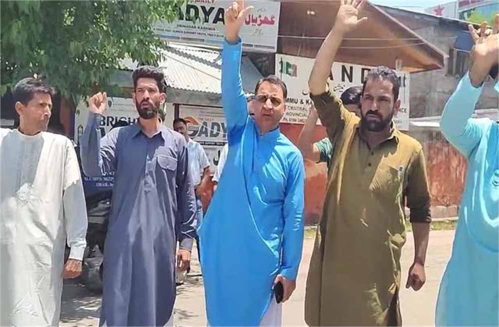 कश्मीर में पाकिस्तान और पाकिस्तान में शरण लिए कश्मीरी आतंकवादी के खिलाफ नारे लगाए व उनके पुतले जलाए