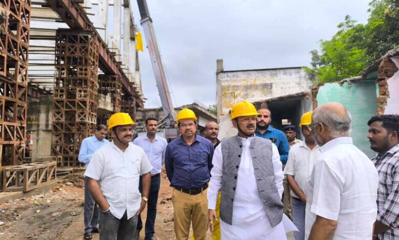 रेलवे ओवर ब्रिज निर्माण कार्यों का मौके पर पहुंच राज्यमंत्री श्री दिलीप जायसवाल ने लिया जायजा
