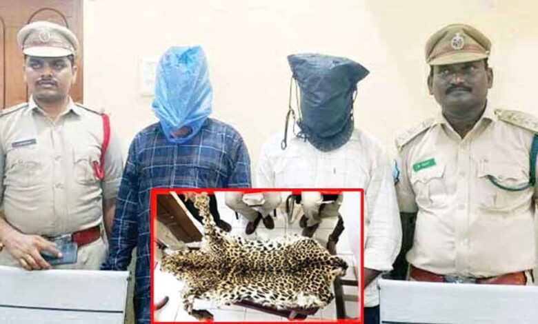 छत्तीसगढ़-बीजापुर से तेंदुए की खाल बेचने गए दो शिकारियों को तेलंगाना पुलिस ने पकड़ा