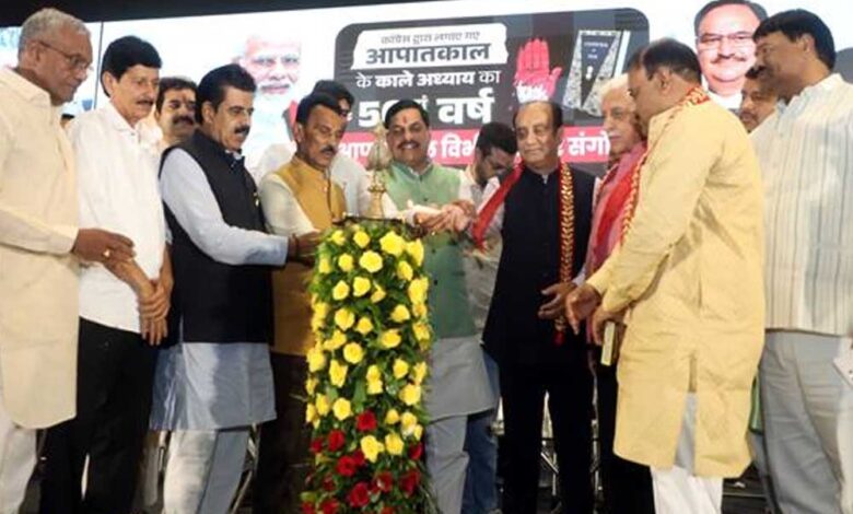 देश में आपातकाल लागू होने की 50 वीं वर्षगांठ को बुधवार को "संविधान हत्या दिवस" के रूप में मनाया गया। इस अवसर पर इंदौर के ब्रिलियंट कन्वेंशन सेंटर में "आपातकाल विभीषिका" विषय पर संगोष्ठी में मुख्यमंत्री डॉ. मोहन यादव ने मुख्य अतिथि के रुप में कहा कि आपातकाल के विरुद्ध लड़ाई देश के लोकतंत्र को बचाने की लड़ाई थी। उन्होंने कहा कि आपातकाल के दौरान न्यायालयों के फैसलों को पलट दिया गया। आपातकाल देश के लोकतंत्र पर काले धब्बे के समान था। उन्होंने कहा कि आज से 50 वर्ष पूर्व 25 जून 1975 को जिन लोगों ने देश में आपात काल लागू किया था, वे ही इस कलंक के लिए जिम्मेदार हैं और वे कभी भी इस कलंक से मुक्त नहीं हो सकते हैं। कार्यक्रम में नगरीय प्रशासन एवं आवास मंत्री श्री कैलाश विजयवर्गीय, जल संसाधन मंत्री श्री तुलसी सिलावट, राज्यसभा सांसद श्री सुधांशु त्रिवेदी, सांसद श्री शंकर लालवानी, विधायक श्री अजय विश्नोई, श्री महेंद्र हार्डिया सहित अन्य जनप्रतिनिधि भी मौजूद थे। संगोष्ठी का शुभारंभ दीप प्रज्ज्वलित कर किया गया।