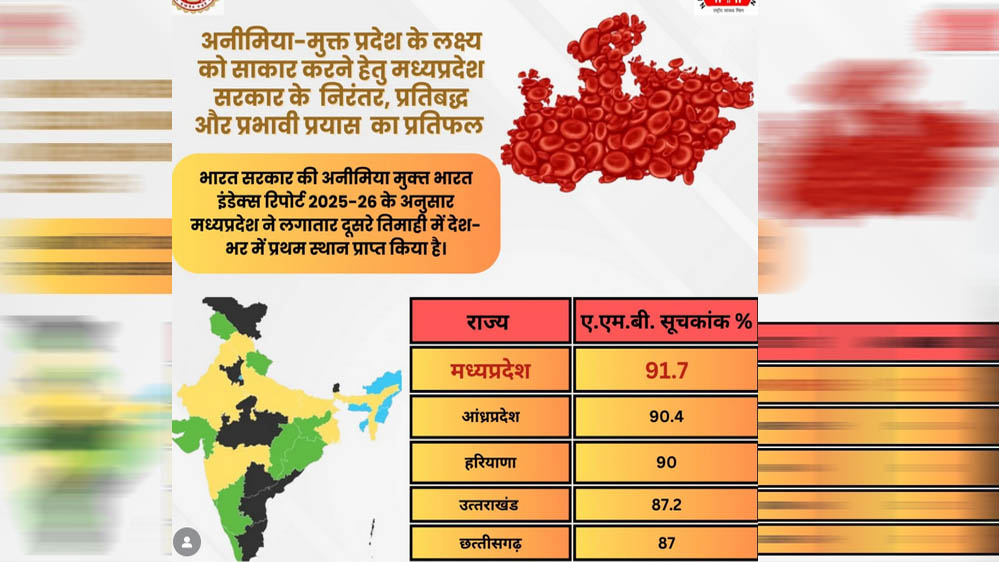 स्वास्थ्य तंत्र की मजबूत प्रतिबद्धता का परिणाम: एनीमिया मुक्त भारत में एमपी दो तिमाही से नंबर-1