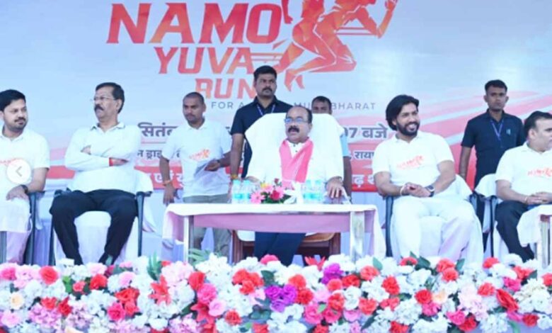 खेल एवं युवा कल्याण विभाग द्वारा स्वस्थ और नशामुक्त भारत के लिए रायपुर और बिलासपुर में आयोजित ‘नमो युवा रन’ में युवाओं ने जोश और उत्साह से भागीदीरी की. युवाओं को फिट और नशामुक्त रखने देश के 75 शहरों में यह दौड़ आयोजित की गई. राजधानी रायपुर में तेलीबांधा तालाब से शुरू हुई यह दौड़ सुभाष स्टेडियम में समाप्त हुई. वहीं बिलासपुर में सीएमडी कॉलेज मैदान से प्रारंभ कर रीवर-व्यू रोड में इसका समापन किया गया.