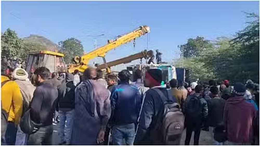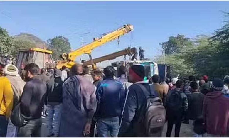 राजस्थान-जयपुर में दिल्ली हाईवे पर ट्रक पलटने से दो लोगों के दबने की आशंका
