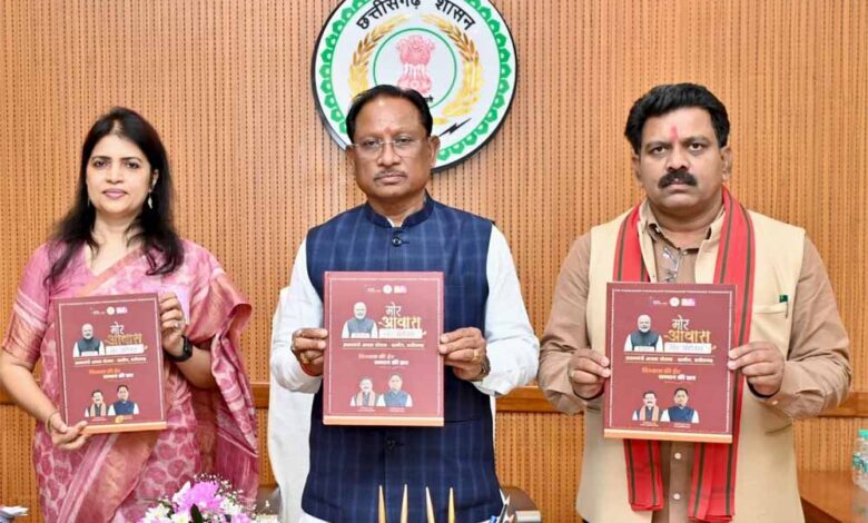 मुख्यमंत्री विष्णु देव साय ने आज विधानसभा स्थित अपने कार्यालय कक्ष में प्रधानमंत्री आवास योजना (ग्रामीण) के अंतर्गत अपनी प्रथम मंत्रिपरिषद बैठक में 18 लाख आवास स्वीकृत किए जाने के निर्णय के दो वर्ष पूर्ण होने के अवसर पर एक आकर्षक कॉफी टेबल बुक का अनावरण किया। यह पुस्तक राज्य में ग्रामीण आवास योजना के तहत प्राप्त ऐतिहासिक प्रगति, नवाचारों और उपलब्धियों को प्रभावी रूप से प्रस्तुत करती है।