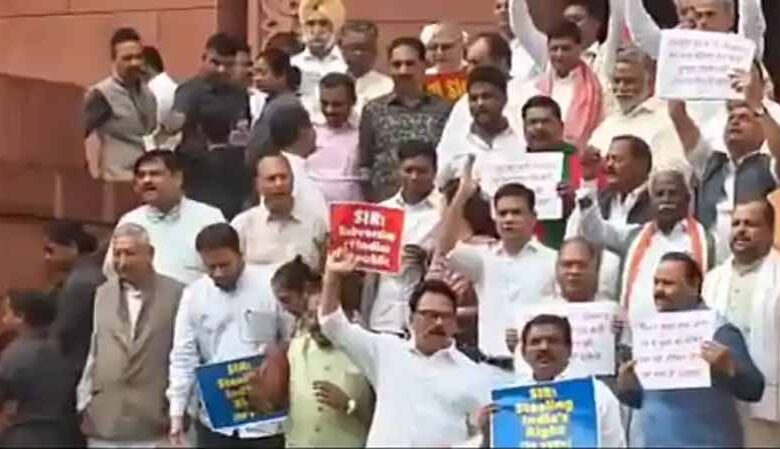 मंगलवार को संसद के दोनों सदनों राज्यसभा व लोकसभा में विपक्ष ने अपनी मांग को लेकर नारेबाजी की। विपक्षी सांसद, बिहार में मतदाता सूची के विशेष गहन पुनरीक्षण मामले पर चर्चा चाहते थे। लेकिन इसकी अनुमति न मिलने बाद विपक्षी सांसदों ने नारेबाजी की। इसके चलते राज्यसभा की कार्यवाही कई बार स्थगित करनी पड़ी। यही हाल लोकसभा का भी रहा। दोपहर दो बजे सदन की कार्यवाही फिर से शुरू होने पर भी यह हंगामा जारी रहा। इसके बाद लोकसभा व राज्यसभा दोनों सदनों को बुधवार सुबह तक के लिए स्थगित कर दिया गया। दरअसल मंगलवार सुबह राज्यसभा की कार्यवाही शुरू होने के कुछ देर बाद ही सदन में जबरदस्त हंगामा देखने को मिला। राज्यसभा की कार्यवाही शुरू होने पर विपक्षी सांसदों ने बिहार में मतदाता सूची में हो रहे गहन रिव्यू का मुद्दा उठाया। बिहार वोटर लिस्ट की विशेष गहन पुनरीक्षण (एसआईआर) के मामले पर विपक्षी सांसद सदन में विस्तृत चर्चा चाहते थे।