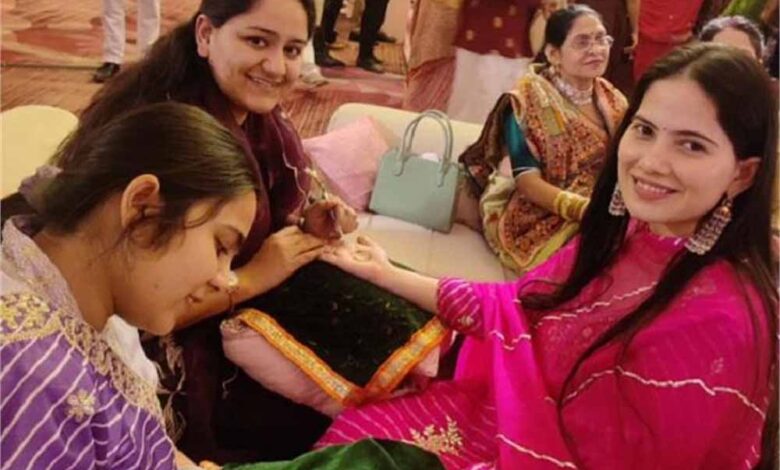 यह तस्वीर कथावाचक इंद्रेश उपाध्याय की मेहंदी सेरेमनी की है। वे प्रसिद्ध कथावाचक कृष्णचंद शास्त्री ठाकुर के बेटे हैं। इस समारोह में कई अतिथि पहुंचे थे, जिनमें जया किशोरी भी शामिल थीं। उन्होंने भी मेहंदी लगवाई, जिसकी तस्वीर अब सोशल मीडिया पर ट्रेंड कर रही है।