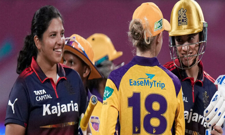 रॉयल चैलेंजर्स बेंगलुरु महिला (प्लेइंग इलेवन): ग्रेस हैरिस, स्मृति मंधाना, दयालन हेमलता, गौतमी नाइक, ऋचा घोष, राधा यादव, नादीन डी क्लर्क, अरुंधति रेड्डी, श्रेयंका पाटिल, लिन्से स्मिथ, लॉरेन बेल.